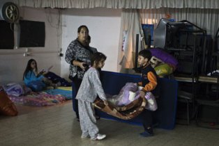 Vorbereitungen für eine Nacht im Luftschutzkeller, Netivot, Nov. 2012