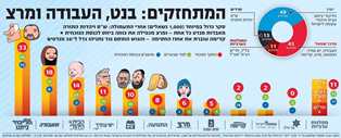 Die Mitte-Links-Parteien (ha-Avoda, Yesh Atid, ha-Tnuah, Meretz, Kadima) wären vertreten mit: Yedi’ot: 45; Ma’ariv: 41; Jerusalem Post: 39; Israel ha-Yom: 43.