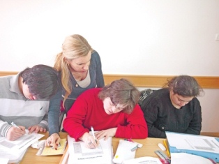 Im Rahmen des M.A.-Studiengangs Sonderpädagogik unterrichten Studierende hier Kursteilnehmer, die etwa das Down-Syndrom haben. Initiatorin des Projekts ist Prof. Hefziba Lifshitz-Vahav, die das M.A.-Programm leitet.