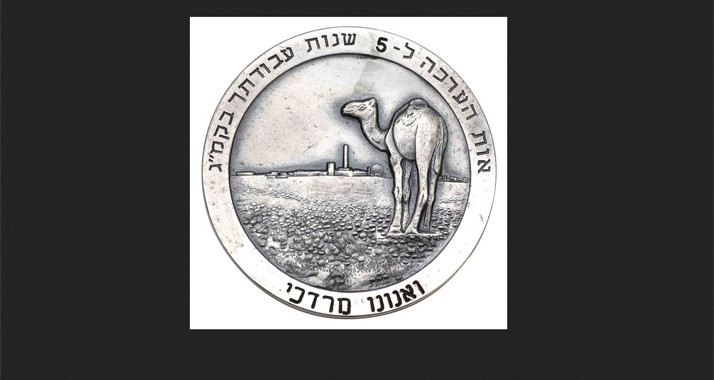 Auf der Medaille sind in hebräischer Sprache die Worte eingraviert: „Auszeichnung für 5 Jahre Ihrer Arbeit im Atomforschungszentrum. Vanunu Mordechai“.