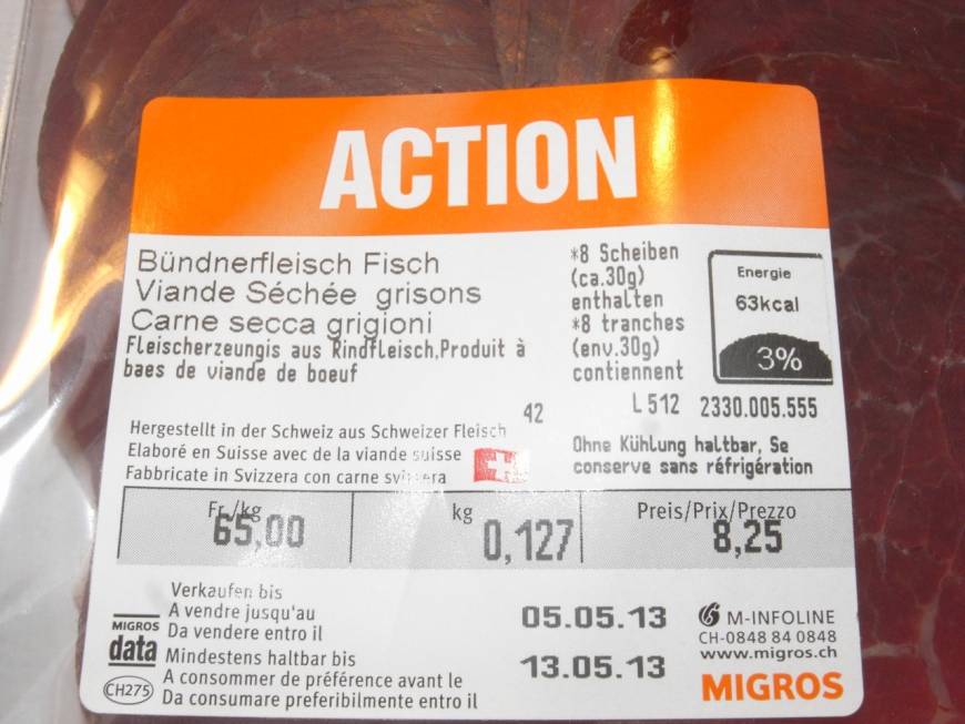 Upps… – Kommt da etwa schon der nächste Fleischskandal auf uns zu? Hats bei der Migros jetzt Fisch im Bündnerfleisch?