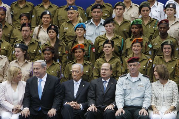 Bild: 120 israelische Soldaten erhalten in der Jerusalemer Präsidentenresidenz eine Auszeichnung. Von Links: Benjamin Netanjahu und seine Frau, Schimon Peres, Yaalon, Gantz und seine Frau.