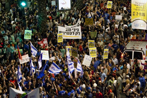 Mehr als 10.000 Israelis haben am Samstagabend gegen den Sparkurs des neuen Finanzministers Yair Lapid demonstriert. Zu Massenprotesten kam es in Tel Aviv (Foto), Jerusalem, Haifa, Modiin, Rishon Lezion und Ashdod. Lapid hatte zuvor eine ganze Reihe von unpopulären Massnahmen angekündigt. Er will nicht nur bei den Sozialausgaben und Gehältern im öffentlichen Dienst sparen, sondern auch die Einkommen- und Mehrwertsteuer erhöhen. Zudem sind Kürzungen beim Kindergeld vorgesehen. Die Demonstranten sind von diesen Vorhaben Lapids bitter enttäuscht. Nach den Sozialprotesten vor zwei Jahren hatten sie sich von der neuen Regierung erhofft, dass sie die Mittelschicht finanziell entlasten würde.