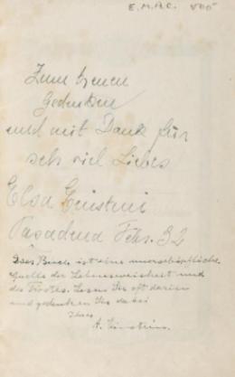 Der Schätzwert hatte bei nur 1500-2500 Dollar gelegen. Eine Bibel mit einer Inschrift von Albert Einstein ist bei einer Versteigerung in New York City für 68500 Dollar verkauft worden. Das Exemplar war Bestandteil einer Auktion seltener Bücher und Manuskripte bei Bonhams. Der in Deutschland zur Welt gekommene jüdische Physiker und seine Frau hatten die Bibel im Jahre 1932 signiert und einer amerikanischen Freundin namens Harriett Hamilton geschenkt.