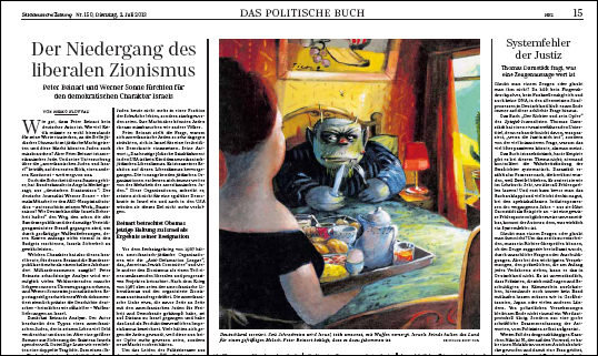 Die „Süddeutsche Zeitung“ (SZ) hat sich für eine Karikatur entschuldigen müssen, die am 2. Juli auf der Seite „Das Politische Buch“ gezeigt worden ist. Dort waren zwei Rezensionen über Bücher zur Politik Israels abgedruckt worden, denen eine Zeichnung des Deutschen Ernst Kahl beigestellt wurde. Darunter stand: