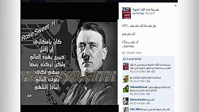 «Ich könnte alle Juden der Welt töten!», steht neben dem Bild von Adolf Hitler auf der Facebook- Seite der Mädchenschule in Tulkarem im Westjordanland.