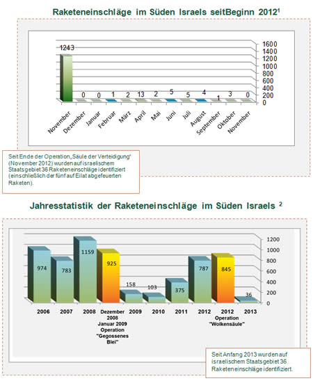 Während der Militäroperation im Dezember 2008 und Januar 2009 wurden israelischen Behörden zufolge rund 1900 Einschläge in Israel registriert, etwa 1500 mal sollen Gebäude getroffen worden sein.