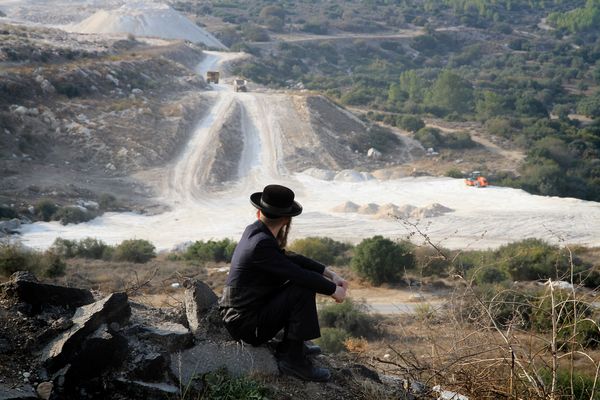Dieser ultraorthodoxe Mann beobachtet eine Baustelle in der Nähe von Beit Shemesh bei Jerusalem. Rund 300 Ultraorthodoxe haben gegen die Arbeiten protestiert. Sie vermuten, dass sich dort alte jüdische Gräber befinden. So wurden vor dem Beginn der Bautätigeiten Artefakte gefunden.