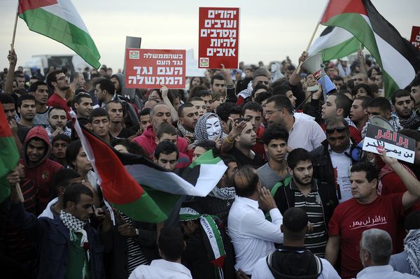 Ein Polizist erlitt eine Stichwunde am Bein, als er von einem Demonstranten mit einem Messer angegriffen wurde. Zum Teil waren es mehrere Hundert Protestierer, die Kreuzungen besetzten und den Verkehr zum Erliegen brachten. Sie warfen der Regierung „ethnischen Terror“ vor und schwenkten palästinensische Flaggen. Die israelische Armee schützte jüdische Siedlungen im sogenannten Westjordanland, die von den Demonstranten bedroht wurden.