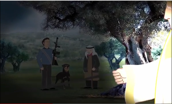 In Video-Bildern wird der „Weihnachtszauber“ mit zahlreichen Szenen von angeblicher „Unterdrückung“ durch Israelis gegenübergestellt. Eine Figur soll den Papst zeigen, der durch Szenerie an einem jüdischen Mann mit einer Pistole vorbei reitet und vorbei an einem arabischen Siedler und Araber, welche durch einen IDF-Soldaten abgesperrt sind.