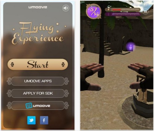 Umoove Experience ist ein kostenloses iOS-Game, in dem Ihr in der Ich-Perspektive durch eine dreidimensionale Welt fliegt. Dank einzusammelnder Zaubertränke erhält man dabei die Fähigkeit zu fliegen. Der Clou ist jedoch nicht das Spiel selbst, das inhaltlich über diese doch recht sinnlose Storyline nicht hinausreicht. Das Besondere ist die Technik, die hinter dem Spiel steckt und wie es gesteuert wird: Die Umoove-Technologie ist eine Gesichts- und Augenerkennungs-Software, mit der Ihr Spiele mit Bewegungen Eurer Augen und Eures Kopfes steuert.