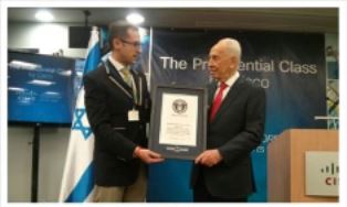 Überreichung der Guinness-Urkunde an Präsident Peres (Foto: Facebook-Seite des Präsidenten)