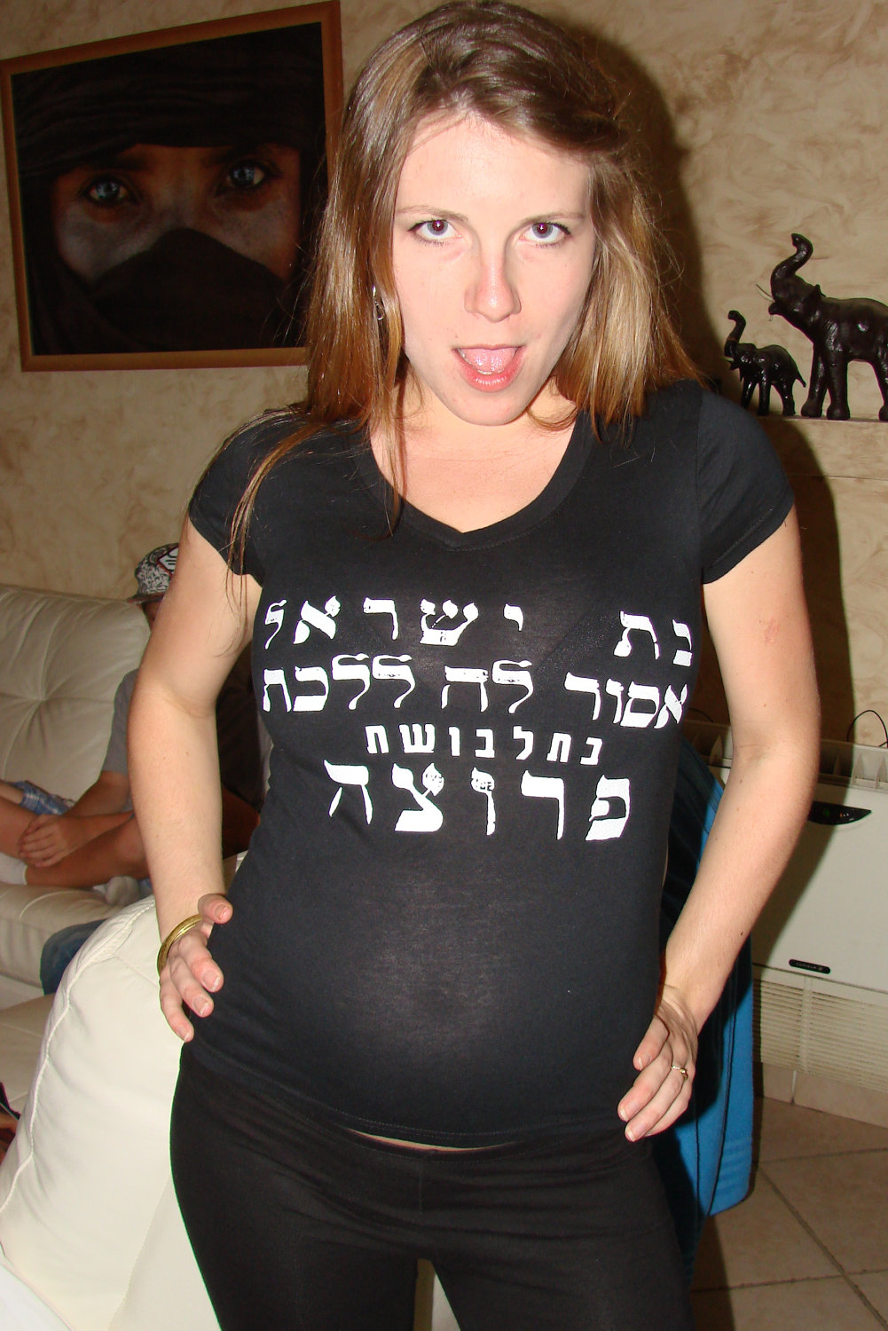 Mit dem T-Shirt möchte sie eine Diskussion über extreme Positionen innerhalb der jüdischen Gemeinde anzustossen. Aber noch wissen nicht viele Kundinnen davon, welche ihren Laden betreten. Aber eines Tages wird Zeit reif sein, es für alle sichtbar zu platzieren.