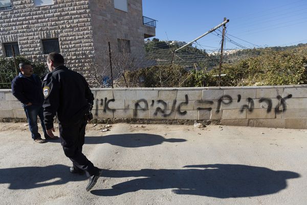 Eine „Price Tag“-Schmiererei im Ostteil Jerusalems. Die Schrift bedeutet: „Araber und Diebe. Keine Koexistenz“. Die Polizei ermittelt auch in diesem Fall.