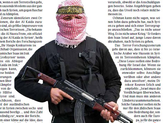 Der Bürgerkrieg in Syrien ist nicht mehr das grosse Thema in den internationalen Medien. Das arabische Land macht durch laxe Strafverfolgung, durchlässige Grenzen und Verbreitung von Waffen von sich reden und ist in der Zwischenzeit zu einem Übungsplatz für Terroristen geworden. Nach Angaben des „Meir Amit Intelligence and Terrorism Information Centers“, Israels wichtigstem Forschungszentrum, wenn es um Terrorzellen geht, kommen tausende Moslems aus der ganzen Welt nach Syrien, um gegen Baschar Al Assad zu kämpfen.