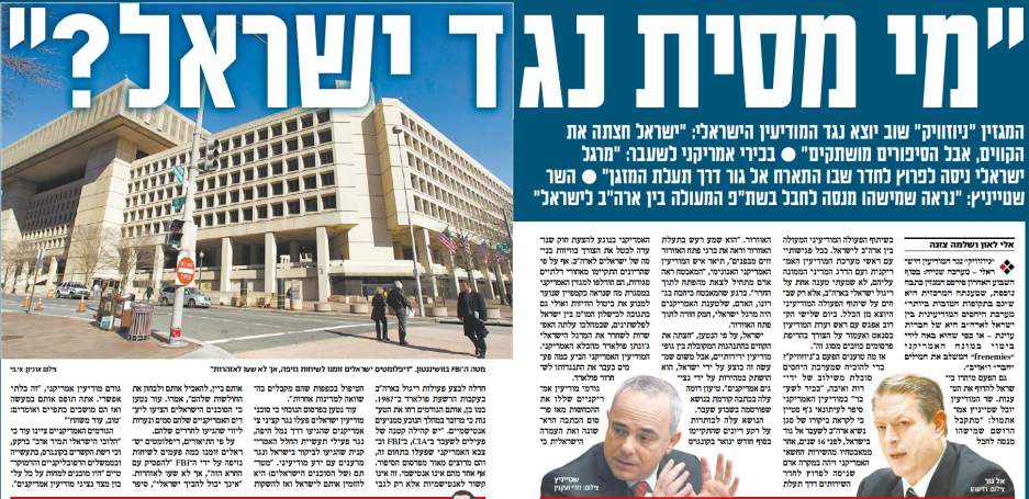 „Newsweek“ zitierte angeblich vertrauliche Parlamentsunterlagen aus Anhörungen zu möglichen Visa-Erleichterungen für israelische Staatsbürger. Abwehrspezialisten hätten den Parlamentsausschüssen für Justiz und Auswärtiges berichtet, dass Israel bei der Ausnutzung der Sicherheitspartnerschaft mit den USA sehr viel weiter gehe als andere enge Verbündete wie Deutschland, Frankreich, Grossbritannien oder Japan. Die Israelis nutzten dabei Geschäftsreisen oder Kooperationen von Industrieunternehmen beider Länder. Andere „Geheimdienstmitarbeiter werden direkt von der israelischen Regierung gesteuert, was wohl meint von deren Botschaft hier“, berichtete ein Kongressmitarbeiter laut „Newsweek“.