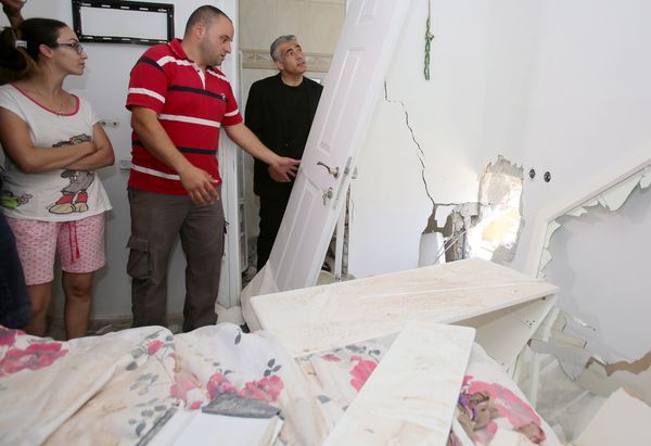 Sie rief ihren Mann Avihai an, der bereits zur Arbeit gegangen war. Als er nach Hause kam sah er, dass eine Rakete ein Loch in die Hausmauer gerissen hatte. Überall war Dreck und Staub, Gegenstände lagen kreuz und quer. „Es ist ein Wunder, dass meiner Frau und den Kindern nichts passiert ist,“ unterstrich Avihai. Seitdem füllt sich ihr Haus mit Freunden, Verwandten, Polizisten, Reportern und Politikern, darunter auch Finanzminister Yair Lapid (rechts im Bild).
