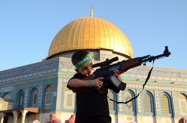 So wurde das Ende des Fastenmonats Ramadan in Jerusalem gefeiert: Ein palästinensischer Junge mit Hamas-Stirnband und Spielzeugwaffe vor dem Felsendom. Schon Kindern wird der Hass gegen Israel eingeimpft.