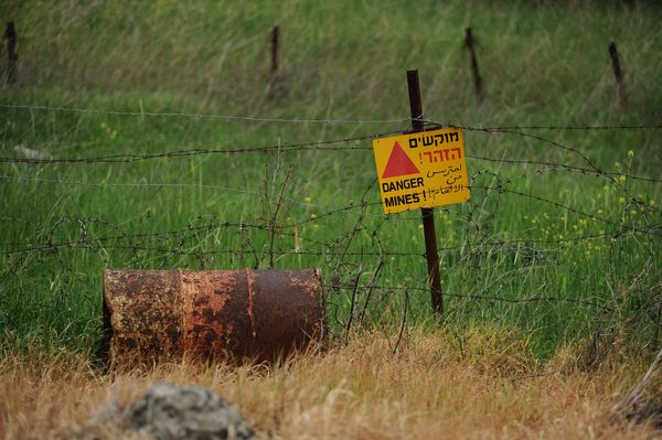 Die Golanhöhen, die Israel im Sechstagekrieg im Jahr 1967 von Syrien eroberte, sind noch heute von Landminen übersät. Zahlreiche Sprengkörper wurden bereits entfernt, ausserdem sind die Minenfelder weitgehend durch Zäune und Warnzeichen abgegrenzt – dennoch kommt es in diesen Gebieten immer wieder zu Explosionen.