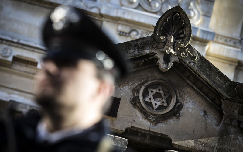 Ein italienischer Carabiniere steht Wache vor einem Gebäude im „Ghetto“, dem traditionellen jüdischen Stadtviertel Roms. Nach den Terroranschlägen von Paris wurden in ganz Europa die Sicherheitsvorkehrungen für jüdische Einrichtungen erhöht – nicht genug, meint Malcolm Hoenlein, Vertreter der wichtigsten jüdischen US-Organisationen