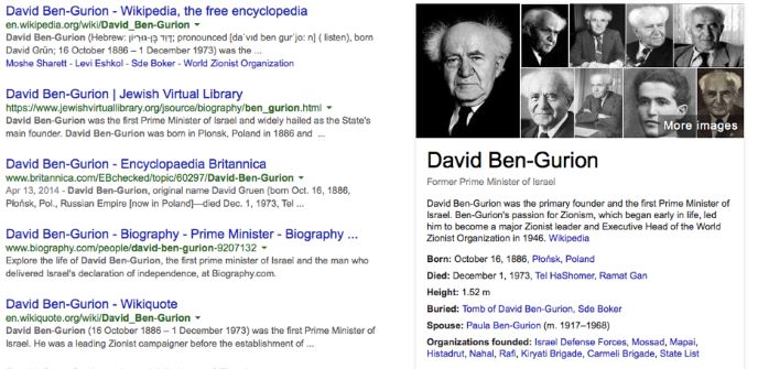 Israels Staatspräsident Reuven Rivlin und die amerikanische Schauspielerin Natalie Portmann sind gemäss Google in Palästina geboren und nicht in Israel. Rivlin ist am 9. September 1939 in Jerusalem geboren, im Staat Palästina. Dies passiert wenn man die Namen in lateinischen Buchstaben in der Suchmaschine von Google (www.google.com) eingibt und mehr Wissen über israelische Persönlichkeiten erfahren möchte. Google erwähnt entweder den Staat Palästina, oder in verschiedenen Fällen nur die israelische Stadt ohne Angabe des Staates Israel. Dies, wenn israelische Politiker im Ausland geboren und in Israel gestorben ist. Wie zum Beispiel Israels erster Ministerpräsident David Ben Gurion, der in Plonsk 1886 in Polen geboren ist und 1973 in Ramat Gan gestorben ist. Das Land Israel wurde nicht erwähnt. So ist auch Israels Ministerpräsident Menachem Begin gemäss Google ohne Landangabe in Tel Aviv gestorben.