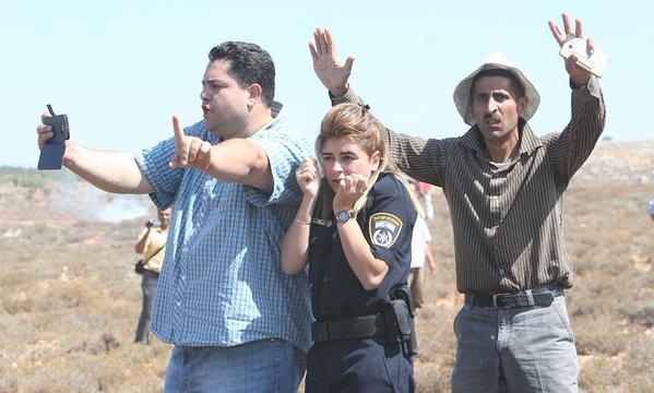 Als jüdische Siedler und eine Gruppe Palästinenser sich mit Steinen bewerfen, gerät eine israelische Polizistin zwischen die Fronten. Das Bild zweier Palästinenser, die in der Nähe des illegalen Siedler-Aussenpostens Esch Kodesch eine israelische Polizistin beschützen, verbreitet sich im Netz viral. Die Frau war ohne Schutzmontur zwischen die Fronten von israelischen Siedlern und palästinensischen Aktivisten geraten, die sich gegenseitig mit Steinen bewarfen.