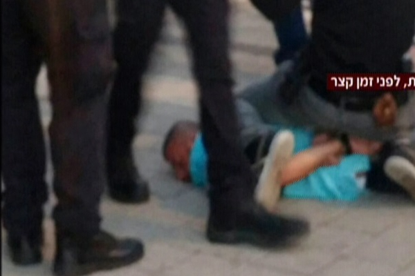 Bei einem Messerangriff in Petah Tikwa bei Tel Aviv ist am Mittwochabend ein 25 Jahre alter Israeli schwer verletzt worden. Der Vorfall ereignete sich an einer Bushaltestelle, wo ein 30-jähriger Palästinenser aus Hebron plötzlich um sich stach. Der Terrorist wurde von Sicherheitskräften und Polizisten überwältigt. Fernsehbilder zeigen den Angreifer, einen Mann mit blauem Hemd, auf dem Boden liegend (Foto).