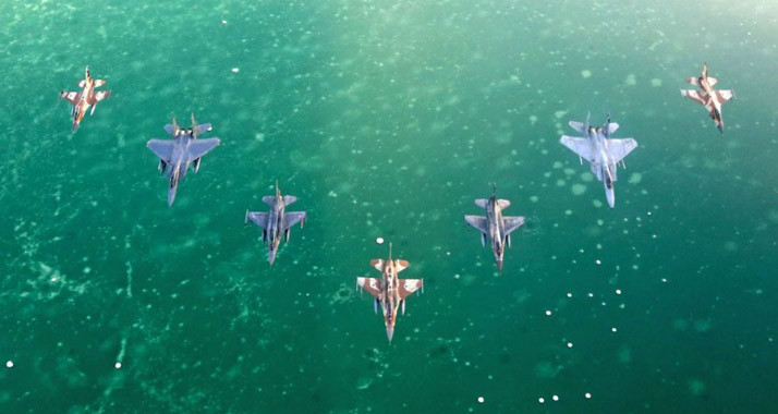 In Formation: Kampfflugzeuge bei der „Blaue Flagge“-Übung über dem Toten Meer Foto: Israelische Luftwaffe