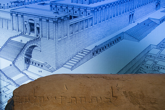 Im Israel-Museum zu sehen: Stein mit hebräischer Inschrift aus der oberen Umfassungsmauer des Tempels (© Flash 90)
