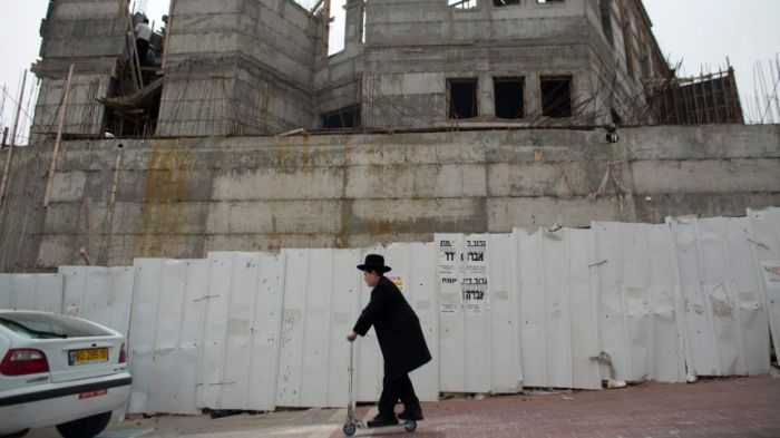 Foto: An ultra Orthodox Jewish youth rides a push scooter past a building under construction in Ramat Shlomo, a Jewish settlement in the mainly Palestinian eastern sector of Jerusalem, on June 5, 2014. AFP AFP PHOTO /AHMAD GHARABLI