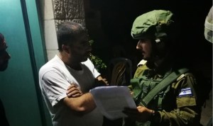 Bild: Überbringung der Mitteilung über den geplanten Abriss des Hauses des Terroristen (Foto: IDF Sprecher)