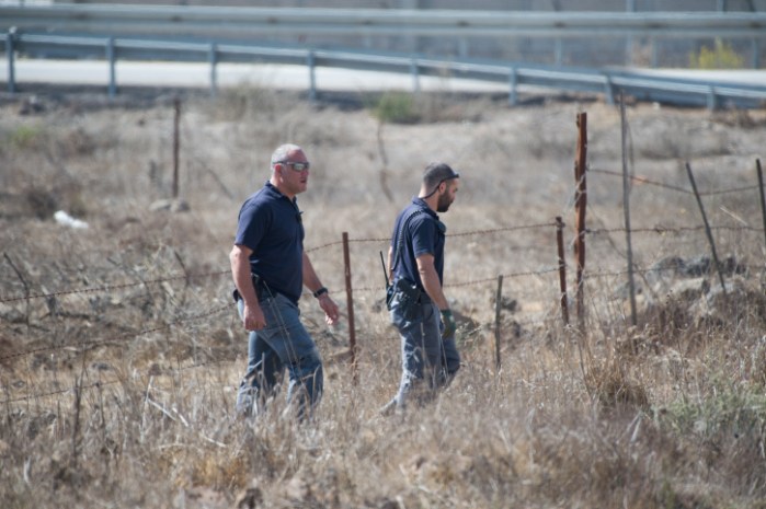Bild: Israelische Polizisten an der Grenze zu Syrien auf den Golanhöhen, nachdem 4 Raketen auf offenem Gelände auf der Israelischen Seite der Grenze explodiert waren (Foto: Basel Awidat/Flash90)