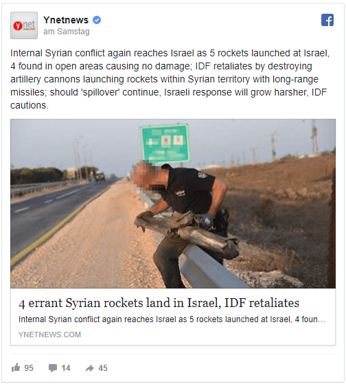 In den Israelischen Medien stellt man sich nun die Frage, ob es sich bei den letzten Raketen aus Syrien auch wieder „nur“ um verirrte Raketen gehandelt hätte, die während der Kämpfe innerhalb Syriens abgeschossen wurden. Jedoch hätte es zu der Zeit keine Kämpfe nahe der Grenze zu Israel gegeben, so dass es sich diesmal auch um einen gezielten Beschuss in Richtung Israel gehandelt haben könnte.