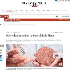 Ein grosses Versprechen, an das offenbar der Fleischkonzern hinter der Marke Wiesenhof glaubt, die PHW Gruppe. Deutschlands grösster Produzent von Geflügelfleisch hat jetzt eine Minderheitsbeteiligung an Supermeat erworben. Zusammen mit zwei Beteiligungsfirmen stellt Wiesenhof dem Start-up aus Israel drei Millionen Dollar zur Verfügung. [Weiterlesen auf tagesspiegel.de]