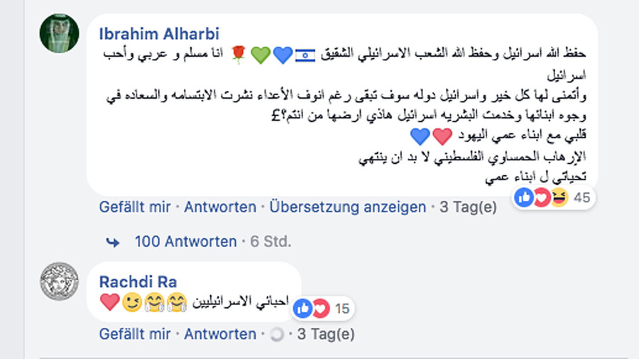 „Möge Allah Israel und das verbrüderte israelische Volk beschützen“, zitiert die israelische Tageszeitung „Yediot Aharonot“ einen Nutzer namens Ibrahim. „Ich bin Muslim und Araber, und ich liebe Israel und wünsche ihm nur Gutes.“ Der Araber schrieb weiter: „Mein Herz ist mit meinen jüdischen Cousins. Es gibt keinen Ausweg daraus, dass der palästinensische Terror der Hamas endet.“
