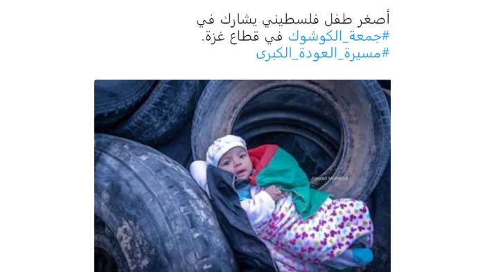 Die User kommentierten auch das Bild eines palästinensischen Babys auf einem Stapel Reifen, die für die Massenverbrennung vorgesehen waren. Ein Mann namens Omar schrieb auf Facebook: „Die Barmherzigkeit und die Menschlichkeit sind aus Euren Herzen geschmolzen, Ihr Hamas-Führer.“ Ein anderer Surfer sprach das Baby an: „Dein kleiner Körper wird durch sie ausgenutzt werden. Sie werden mit Deinem Blut Geschäfte machen, mein Kind, sie werden mit Deiner reinen Seele Geschäfte machen. Mein teuerer Palästinenser – sie werden mit Dir und Deiner Geschichte Geschäfte machen.“