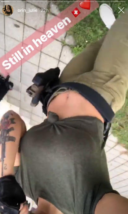 Bis jetzt scheint Orin Julie aber noch keine Probleme mit dem Gesetz bekommen zu haben. Im Gegenteil: Die ehemalige IDF-Soldatin schwärmt für die Schweiz. «Noch immer im Himmel», schreibt sie zu einem Foto, auf dem sie im Lara-Croft-Look durch die Schweiz reist. Auch kombiniert sie zu ihrem Israel-Cap das Schweizer Wappen.