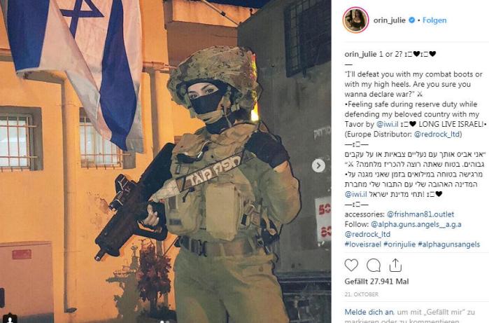 Orin Julie (24) aus Israel liebt Waffen und knappe Outfits. Dass diese Kombination auf Instagram auf Gefallen stösst, liegt auf der Hand.