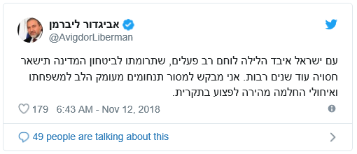 „Das israelische Volk hat einen grossen Kämpfer verloren, dessen Leistungen für die Sicherheit des Staates für viele Jahre geheim bleiben werden. Von tiefstem Herzen möchte ich der Familie mein Beileid aussprechen und dem Verwundeten eine schnelle Genesung“, schrieb Verteidigungsminister Avigdor Liberman heute früh auf seinem Twitter Konto.