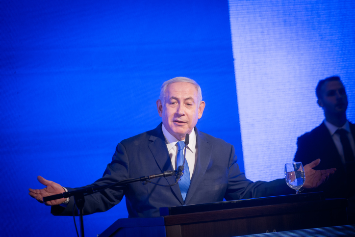 Bild: Ministerpräsident Benjamin Netanjahu gestern während seiner Rede vor Partei-Anhängern in Tel Aviv (Foto: Miriam Alster/Flash90)