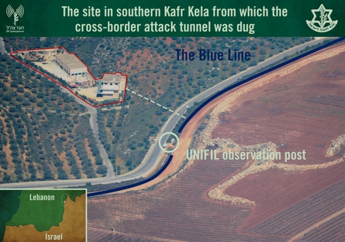 Der Armeesprecher erklärte, das der Tunnel unter einem zivilen Gebäude gegraben worden sei, das bis 2014 einer Firma zur Herstellung von Betonblöcken diente. Das Gebäude würde sich nur wenige Meter entfernt von einem Posten der UNIFIL-Truppen der Vereinten Nationen befinden.