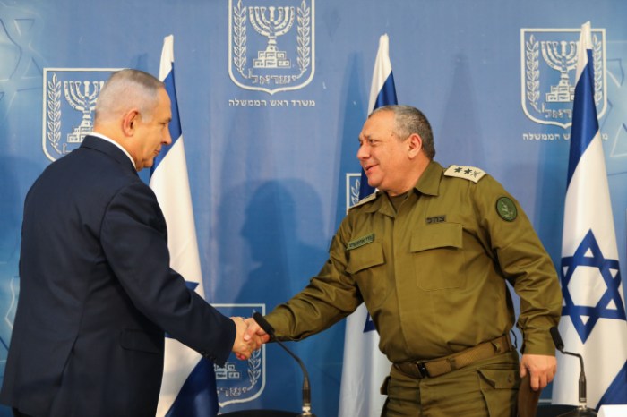 Ministerpräsident Netanjahu bedankt sich während der Pressekonferenz beim Generalstabschef Eizenkot für die erfolgreiche Leitung der Operation im Norden (Foto: Noam Revkin Fenton/Flash90)
