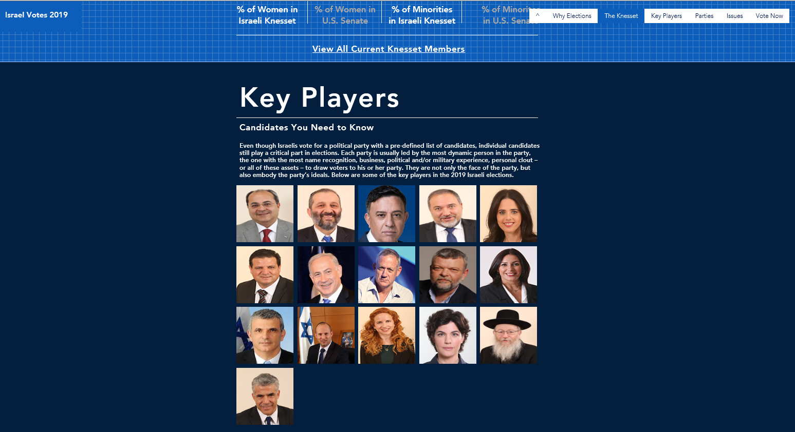 In einer Kategorie der Webseite kann sich der potenzielle Online-Wähler über die politischen Schlüsselfiguren des israelischen Wahlkampfes 2019 informieren (Foto: Israelvotes2019.com; Screenshot ISRASWISS)