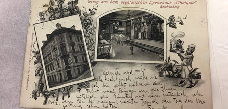 Eine Postkarte des jüdischen Autoren Franz Kafka aus dem Nachlass seines Freundes und Verlegers Max Brod in der Jerusalemer Nationalbibliothek