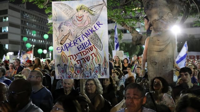 Zehntausende demonstrieren in Tel Aviv gegen ein Gesetz, dass Israels Premier vor Strafverfolgung schützen soll.