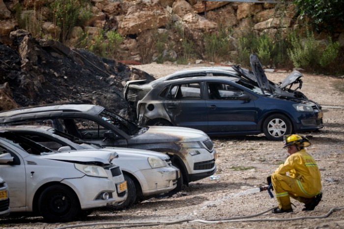 Auch an einem Wald im Stadtteil Malcha in Jerusalem wurden einige Autos wegen eines Feuers beschädigt. (Yonatan Sindel/Flash90)
