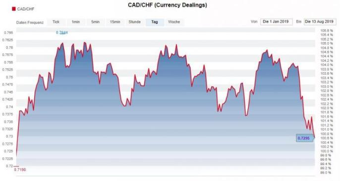 Entwicklung Kanadischer Dollar zum Franken seit Jahresbeginn, Quelle: cash.ch