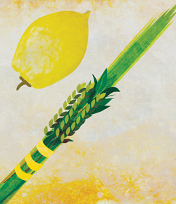 Eine weitere speziell mit dem Sukkot-Fest in Verbindung stehende Mizwa ist das Nehmen der vier Arten: einen Etrog (zitonenähnliche Zitrusfrucht), einen Lulaw (Palmwedel), drei Hadassim (Myrtenzweige) und zwei Arawot (Weidenäste). Der Midrasch sagt uns, dass die vier Arten die Gemeinde der Kinder Israels darstellenden verschiedenen Typen und Persönlichkeiten repräsentieren, die dessen immanente Einigkeit wir am Sukkot-Fest betonen.
