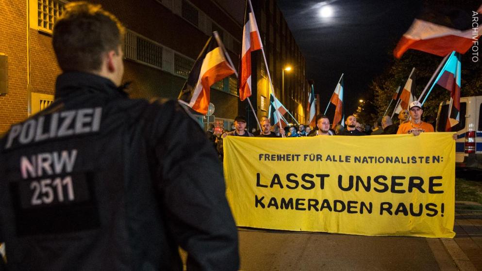 Dagegen gingen die Rechtsextremen mit einem Eilantrag vor, hatten wie schon in erster Instanz auch vor dem höchsten Verwaltungsgericht bei offensichtlich gleichgesinnten Richtern in NRW Erfolg. (Bild, Foto: Action Press)