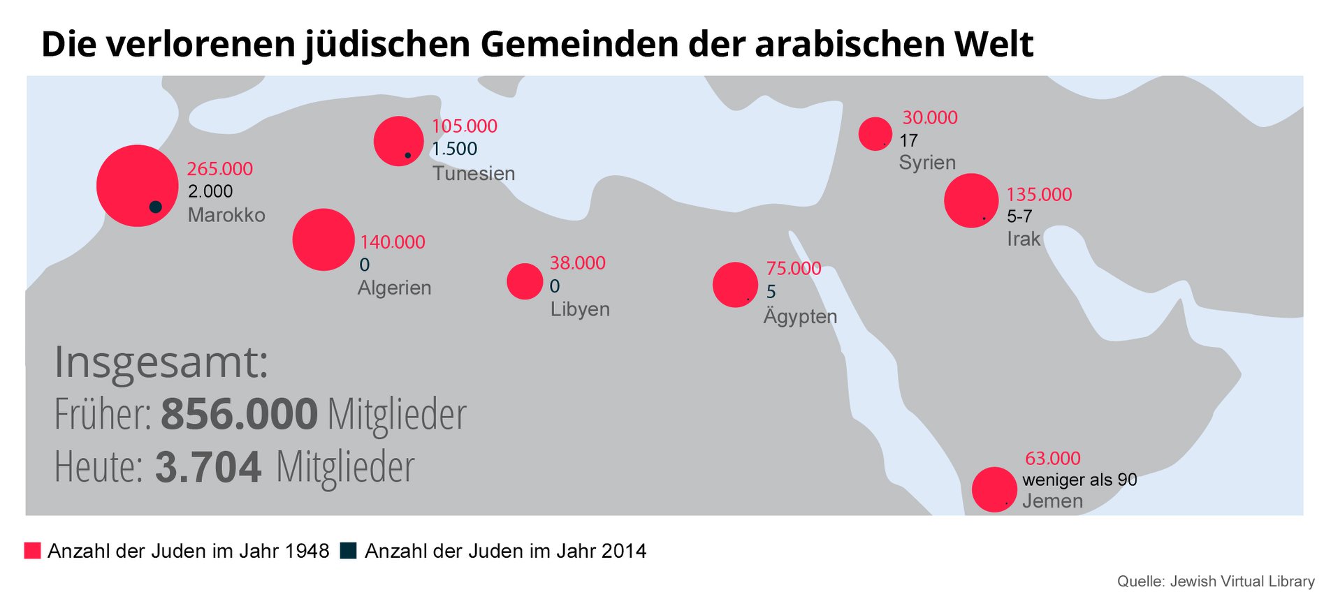 Nach der Gründung des Staates Israel verschwanden fast alle jüdischen Gemeinden in der arabischen Welt. Die einheimischen Juden wurden enteignet, es wurde ihnen die Staatsbürgerschaft entzogen, sie wurden vertrieben, eingesperrt, gefoltert und viele auch ermordet. Heute gibt es kaum mehr Spuren von diesen einst so blühenden Gemeinden. Die Flucht und Vertreibung der Jüdinnen und Juden aus arabischen Ländern ist ein wenig beachtetes Kapitel des Nahostkonflikts.